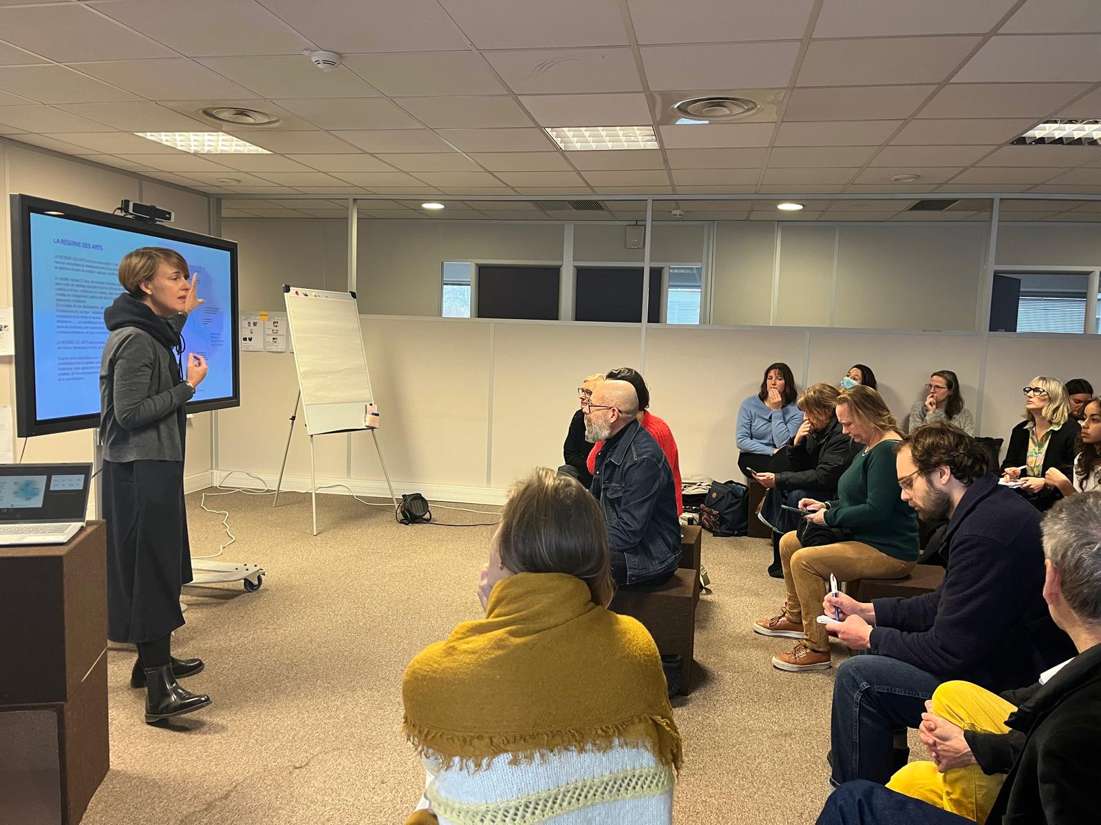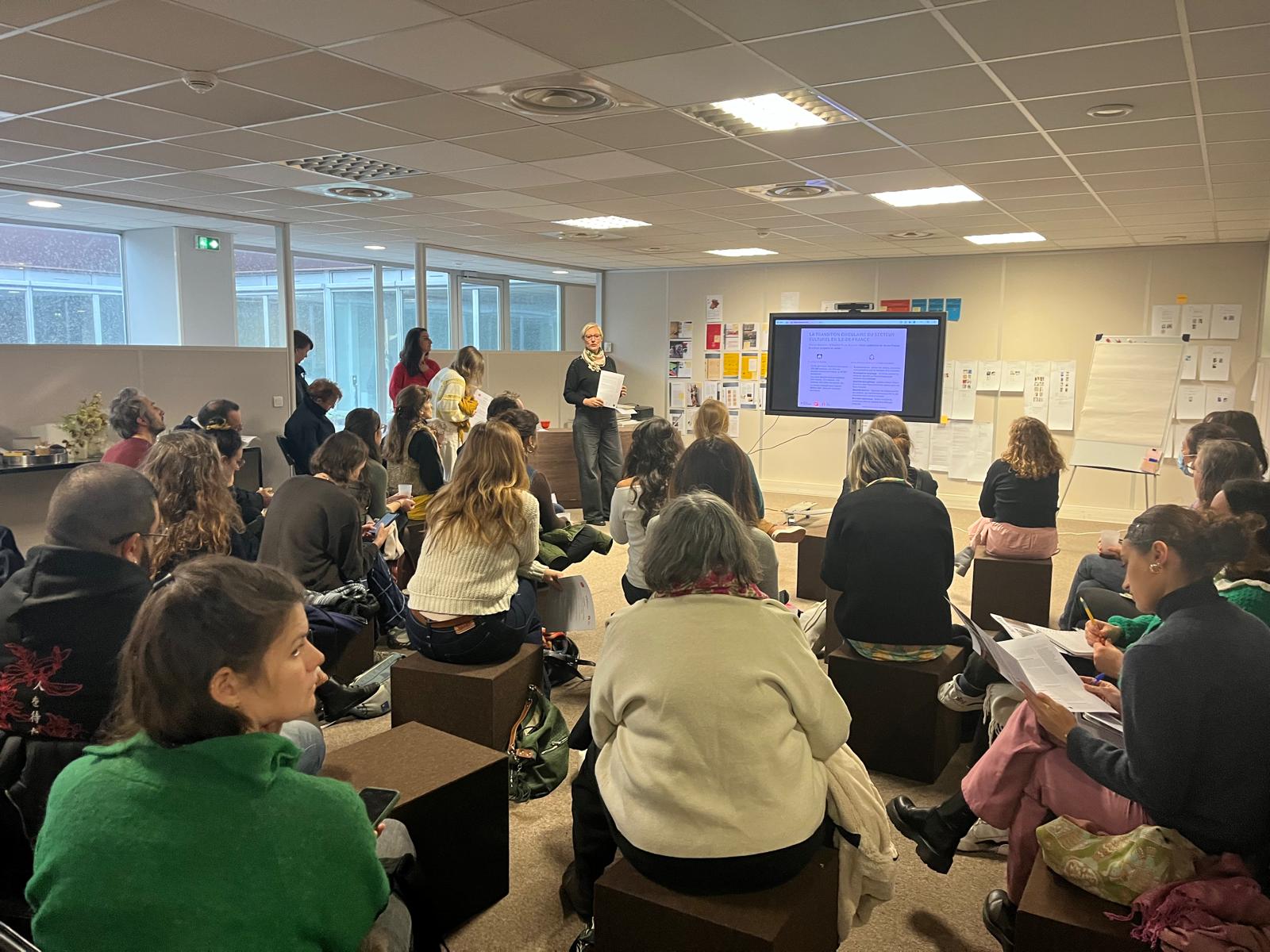 • Émilie JAROUSSEAU, urbaniste, et Carine CAMORS, socio-économiste à L’Institut Paris Region) : présentation de la Communauté des territoires franciliens circulaires ; des objectifs de l’atelier ; reprise des éléments sur les enjeux Économie Circulaire et Culture