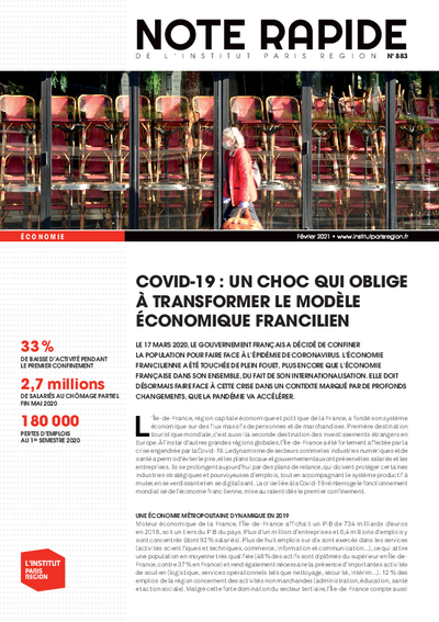Grande région économique insérée dans la compétition internationale, l'Île-de-France possède d'indéniables atouts qui la rendent performante et attractive. Cependant, de nombreux défis se posent à elle, liés aux transformations profondes de l'économie que la crise de la Covid-19 n'a fait que révéler avec une acuité inédite.